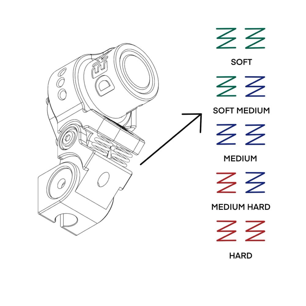 The springs come in pairs of 2 but you can experiment by mixing them, for example by fitting 1 hard and 1 medium to find your ideal setting.